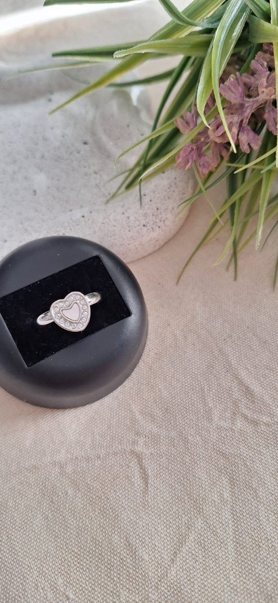 Anillo de acero quirúrgico con corazón de nácar y strass, N18