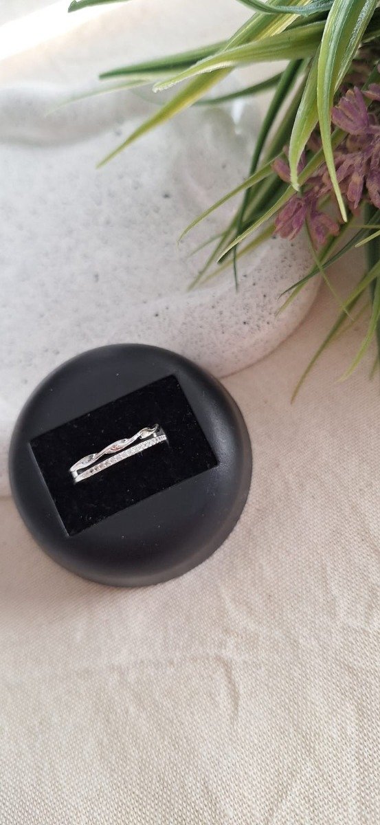 Anillo de acero blanco, con micropavé mini N17