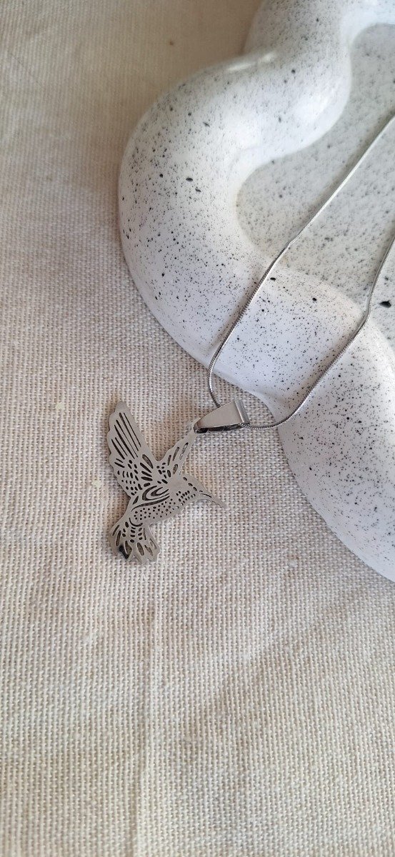 Collar de acero quirúrgico con dije de Colibrí.