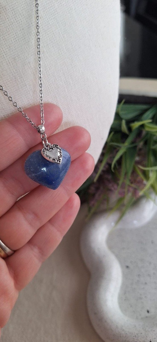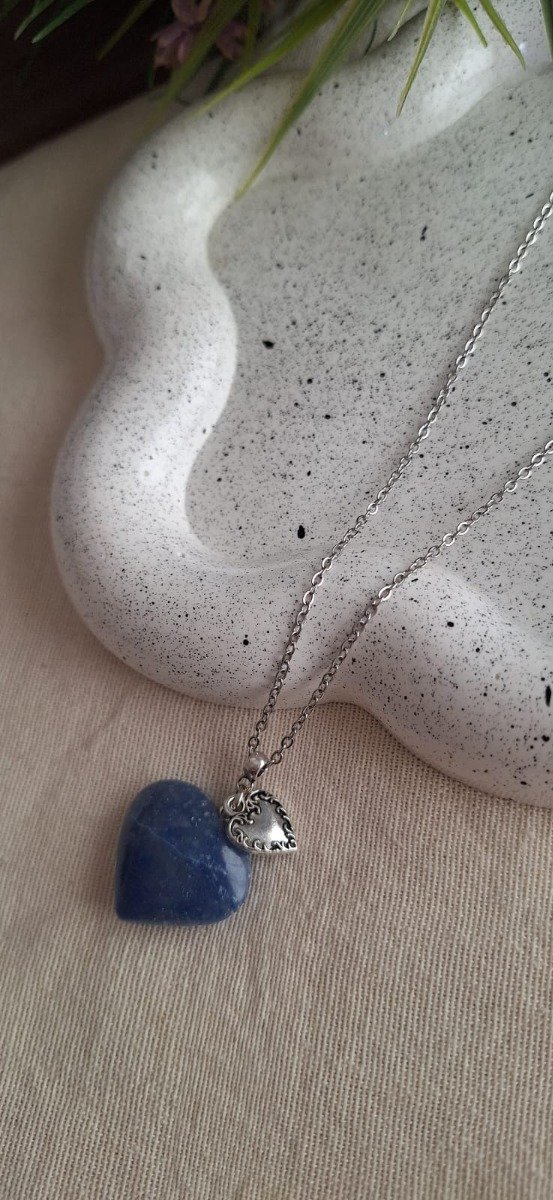 Cadena de acero quirúrgico y dije de corazón de cuarzo azul.