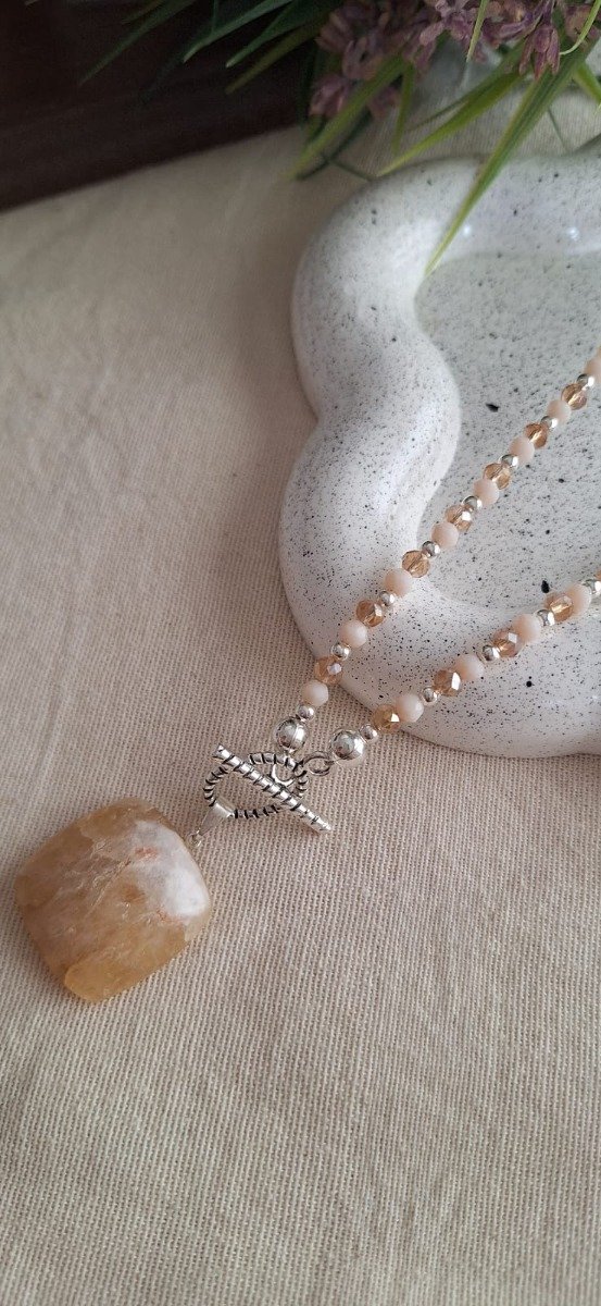 Collar realizado con mini cristales acrílicos y cierre marinero. Cristal Natural de Cuarzo azul o Citrino.