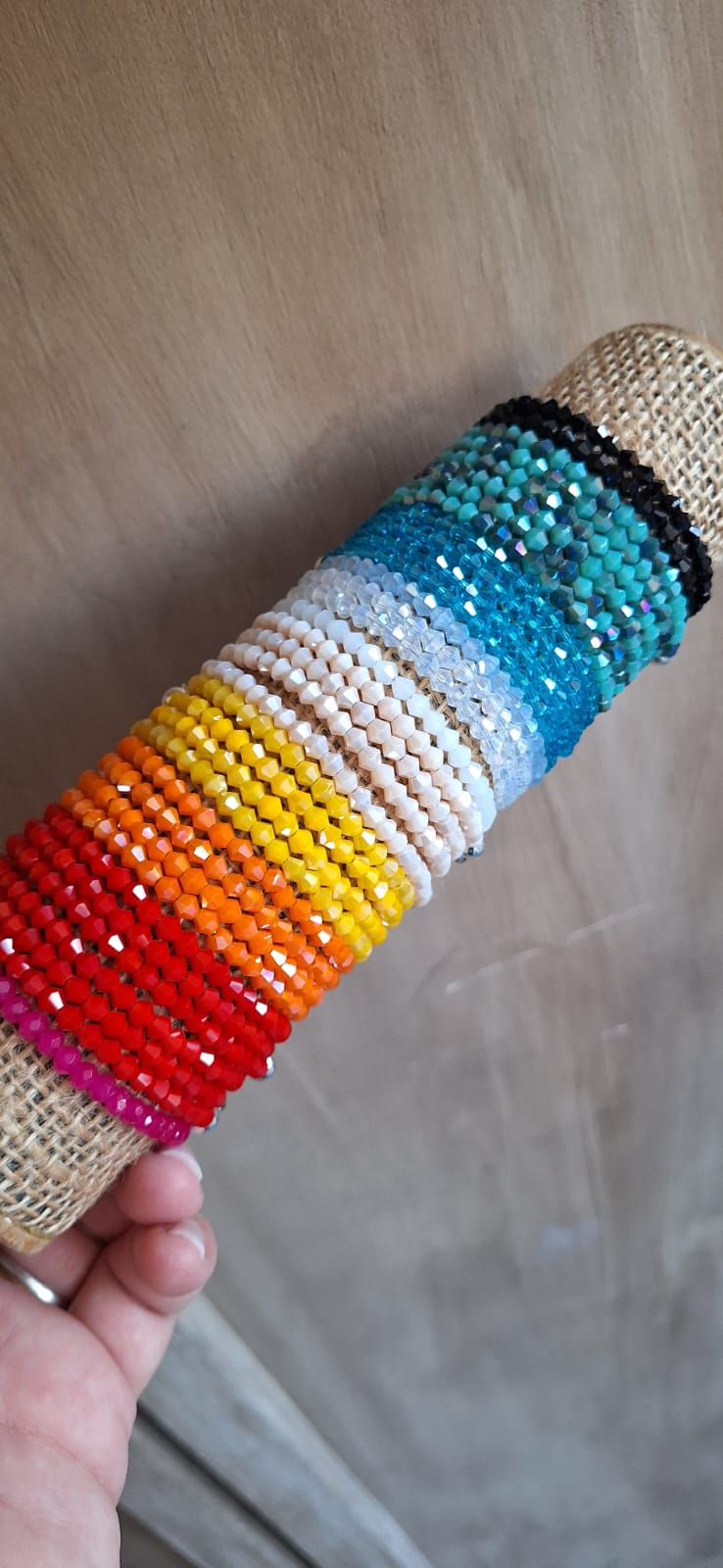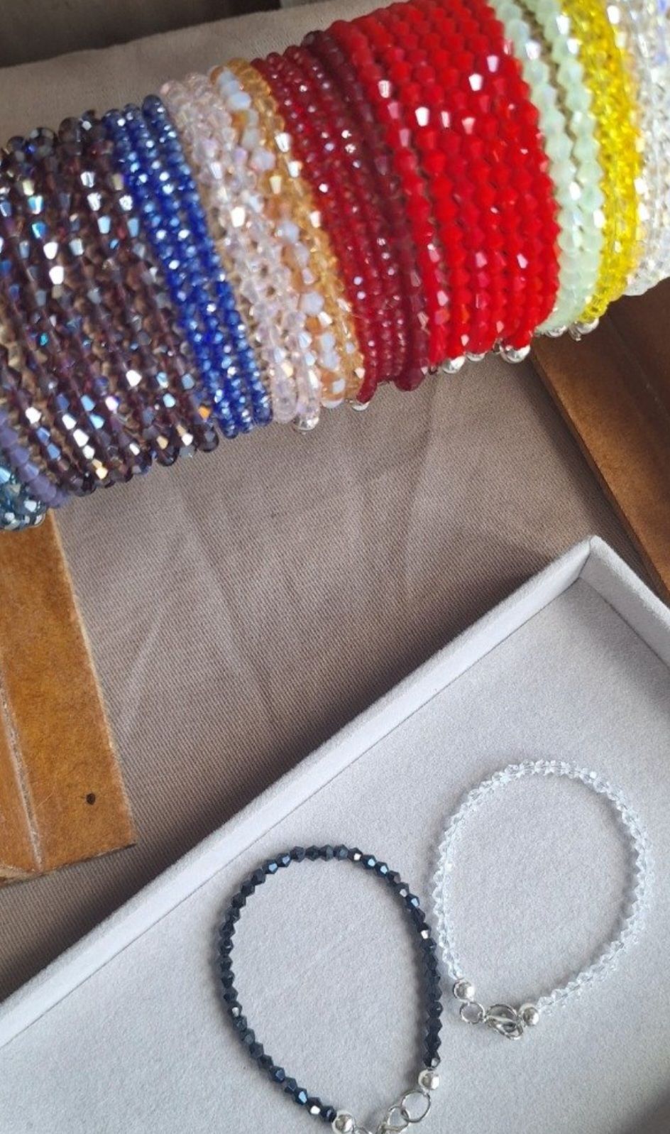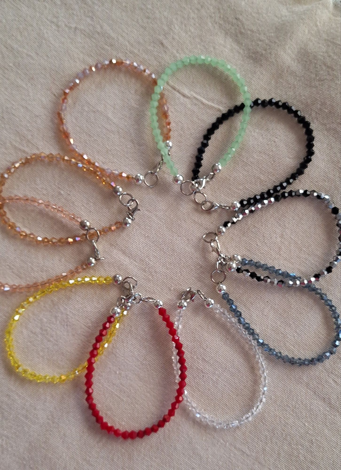 Pulsera realizada con tanza de acero y cristal cónico de acrílico.