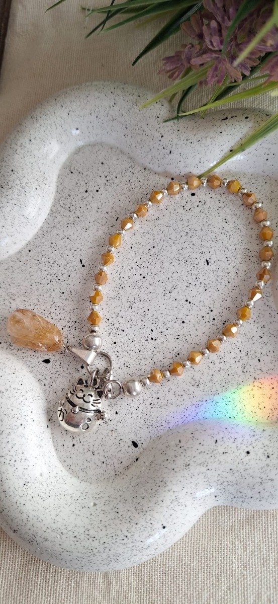 Pulsera realizada en tanza rígida con cristalitos cónicos acrílicos y dije de citrino.
