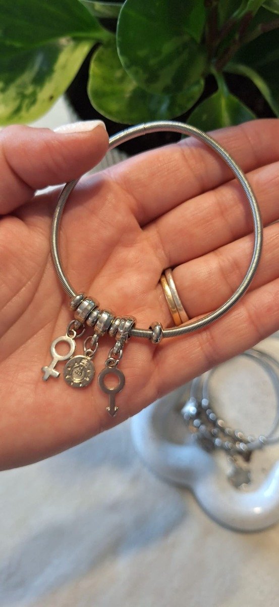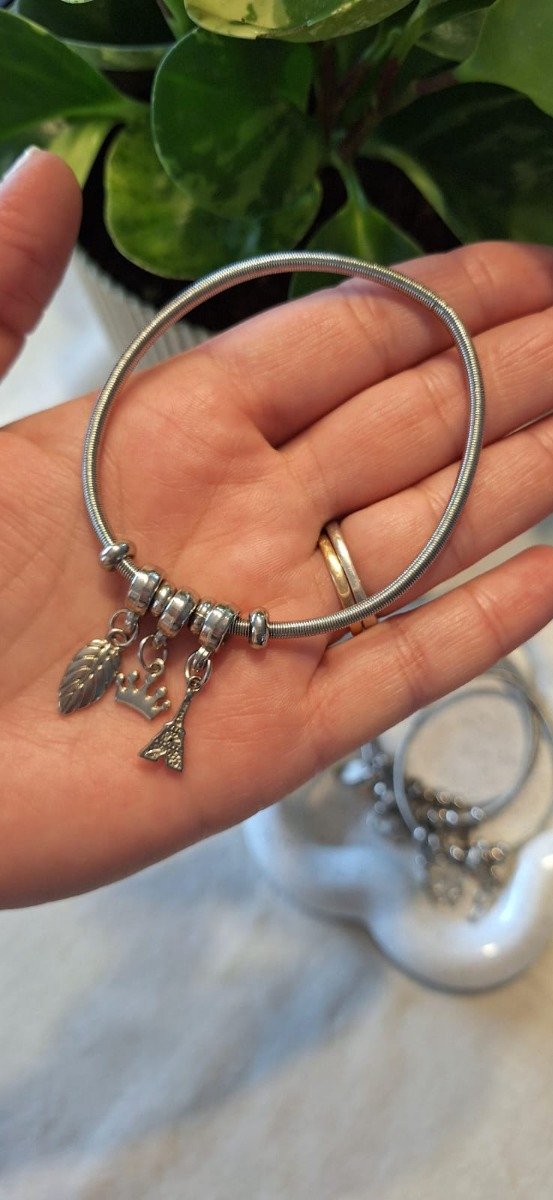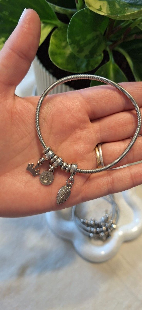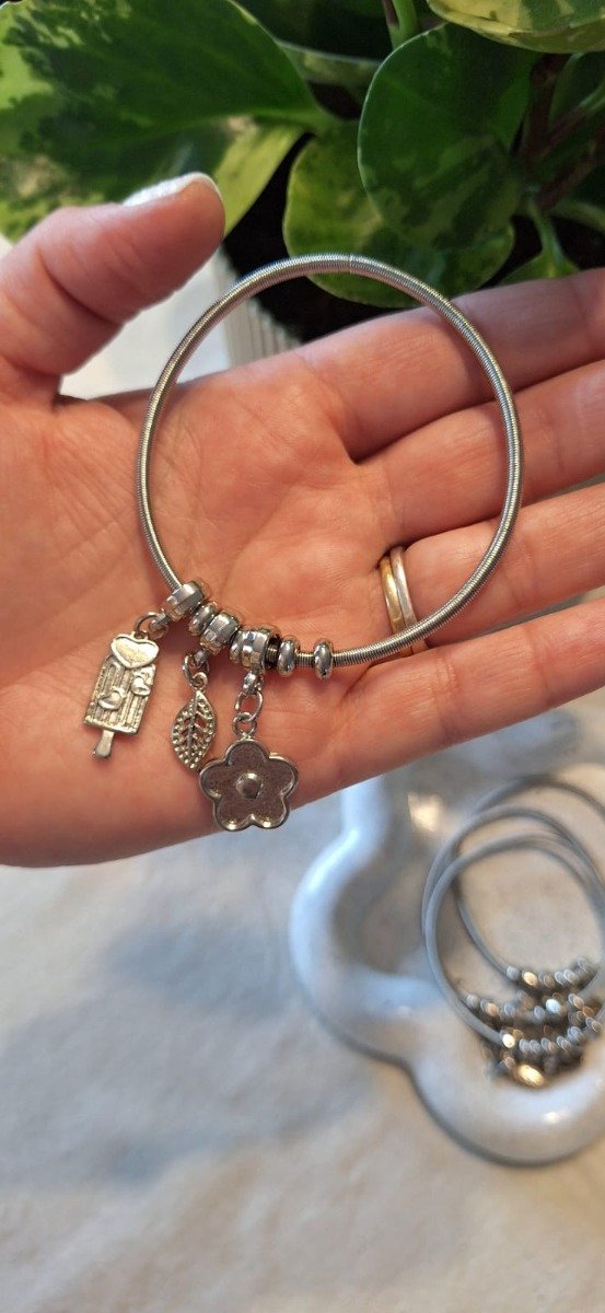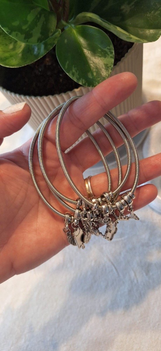 Pulsera de acero quirúrgico, elastizada, con charms, estilo Pandora.